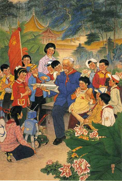 中国画《徐特立爷爷和孩子们》(96x68cm)李日湘