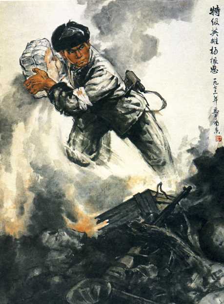 中国画《特级英雄杨根思》(107x80cm)于保勋 1973年