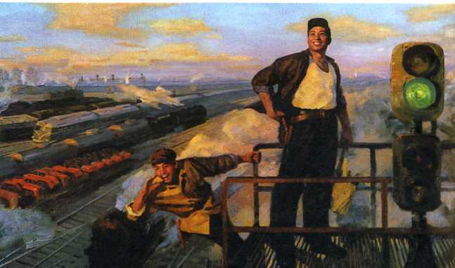 油画《展新图》(上海机床附件一厂)苏明 (上海胜德塑料厂)胡依仁