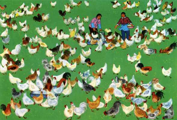 年画《大队养鸡场》陕西户县 玉蝉公社陂头大队社员 马亚利(女)