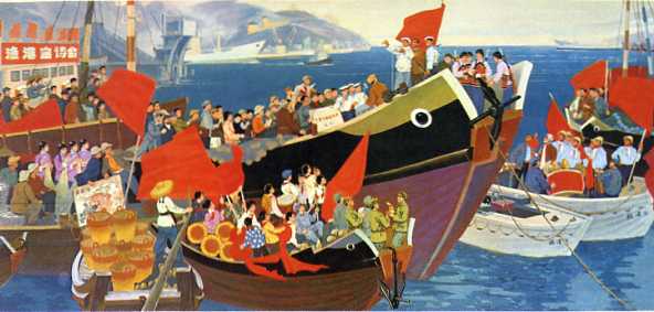 年画《千歌万曲献给党》上海航道局船队工人美术组
