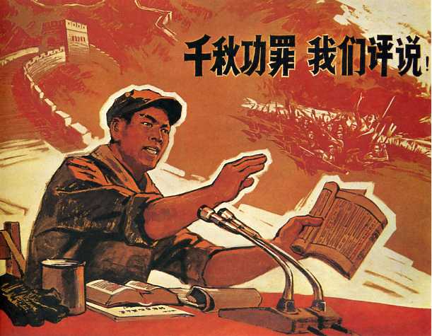 美术大字报《千秋功罪,我们评说》阳泉手管局农机厂工人美术组