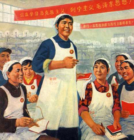 油画《在学习班上》温州针织厂工人 曾成金 1971年