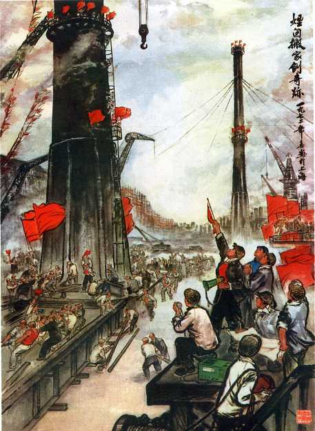 国画《烟囱搬家创奇迹》上海中国画业余创作组