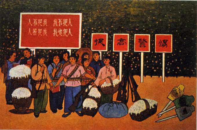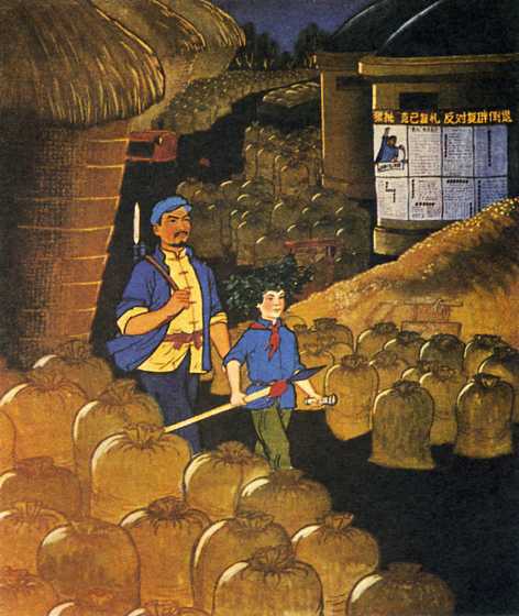 农民画《夜哨》周长源 1975年