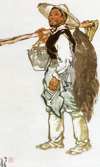 | 纸本设色《粒粒皆辛苦》(105x65cm)1955年 中国美术馆藏