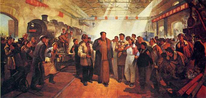 油画《伟大领袖毛主席视察哈尔滨车辆厂》祝林恩、钟宝库、肖国梁