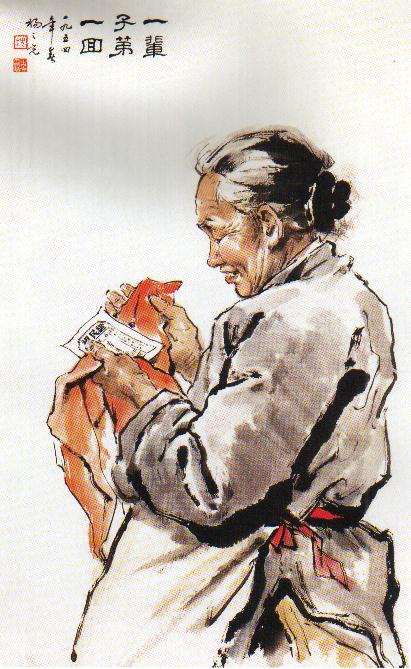 纸本设色《一辈子第一回》(101x63cm)1954年 中国美术馆藏