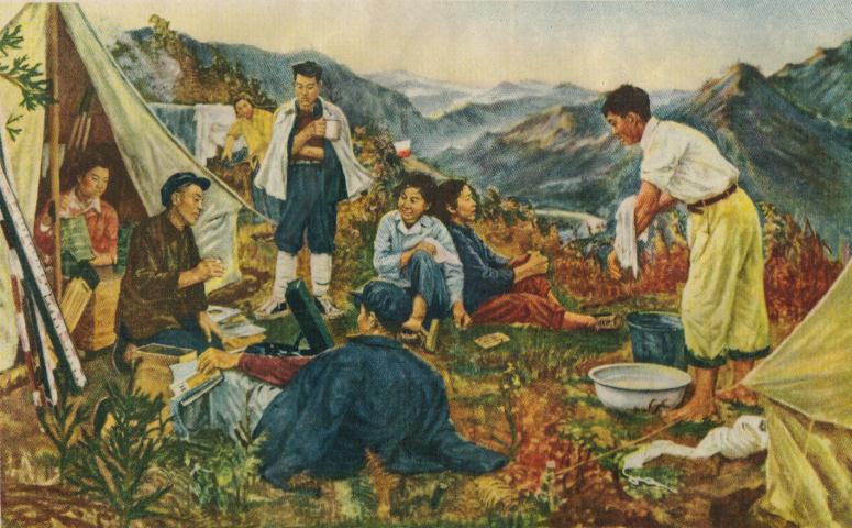年画《测量队员的生活》张隆基 1956年