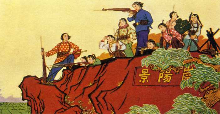 年画《景阳岗十姐妹》王辉亮、郝丕瑜 1964年