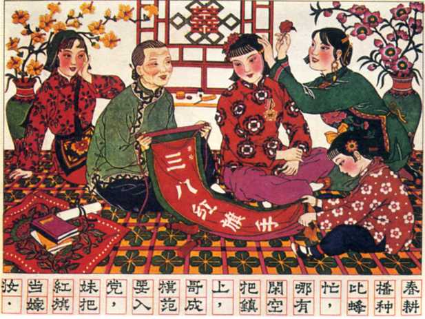 年画《妹把红旗当嫁妆》山东省年画创作组 1962年
