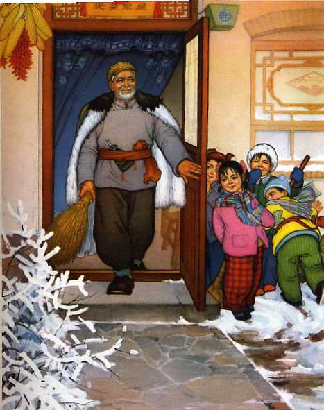 年画《谁又替我把雪扫》刘晓莉
