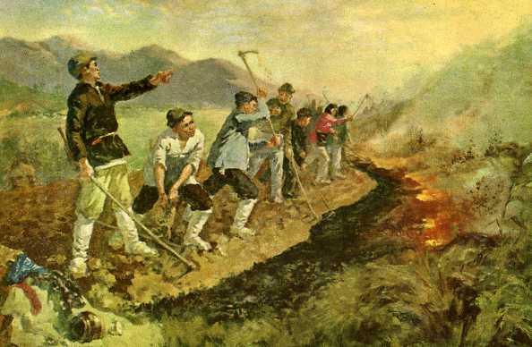 水粉画《漳河两岸风光好》吴静波 1955年