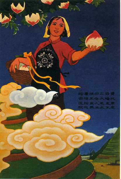 宣传画《踏着梯田上云霄,去摘王母大蟠桃,送给亲人毛主席,祝他长生永不老》沈瑞等 1958年