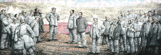 东方红——杨家岭1945(国画)毕建勋 215cm×635cm