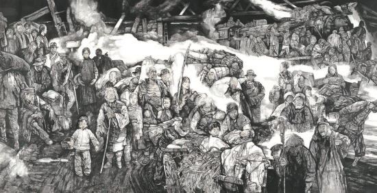 我的家在东北松花江上(国画) 陈钰铭 305cm×597cm