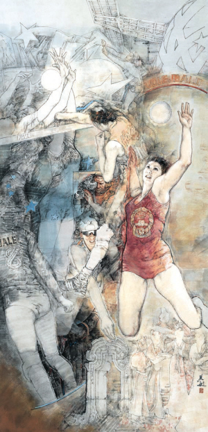 铿锵玫瑰——中国女排首获世界冠军(国画) 华其敏