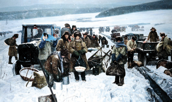 青春记忆——知识青年上山下乡(油画) 陈宜明 300cm×500cm