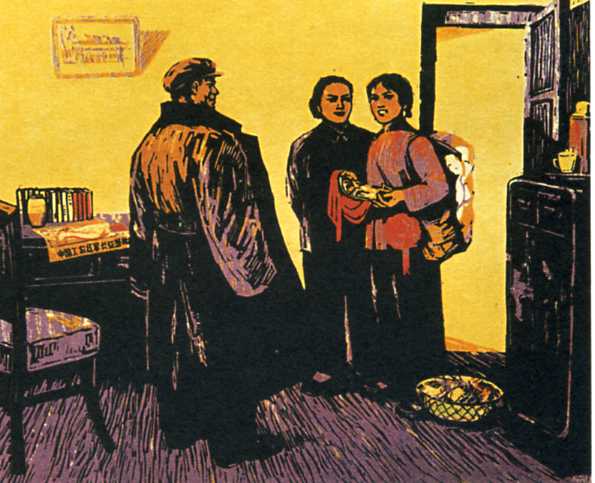 版画《接过红军鞋》邹文正