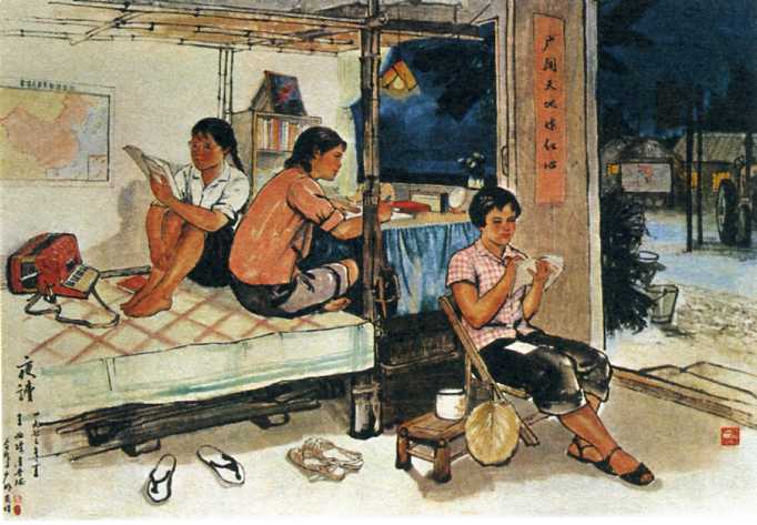 中国画《夜读》王恤珠、潘晋拔 1973年