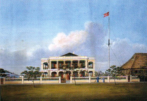 水粉《荷兰公使馆》(33x46.5厘米)约1840年 当时该馆可能设在广州。